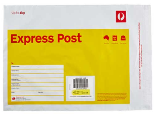 우체국에서 Express post 두장을 사서 하나는 서류와 같이 넣어서 보내면 되는데 크기가 다른 것을 사셔도 되고 하나를 접어서 넣으셔도 됩니다.